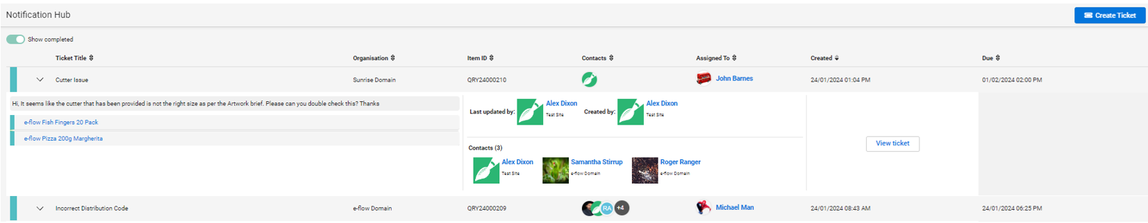 Notification Hub ticket details