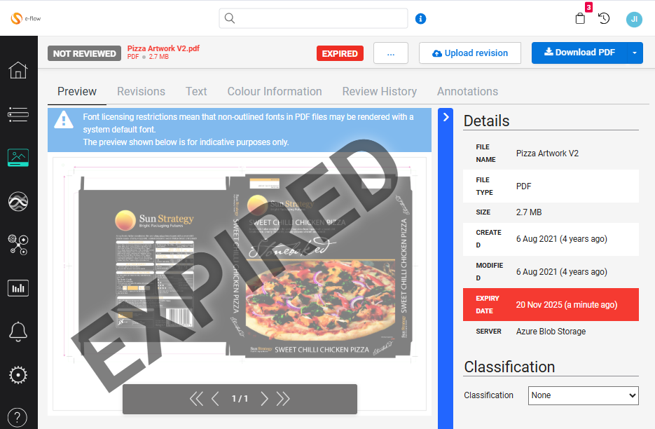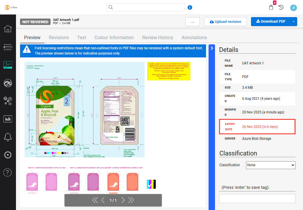 We have enhanced the visibility of expired assets in e-flow to include assets which are due to expire within the next 7 days. These will be displayed through displaying the Expiry date in the details section in red, with a countdown to show how many days before the asset expires: