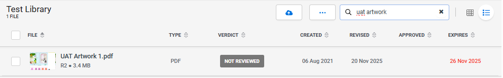 When viewed in the list view in the library, the filename text will be red and in the 'Expires' column, the date of expiry will be in red: