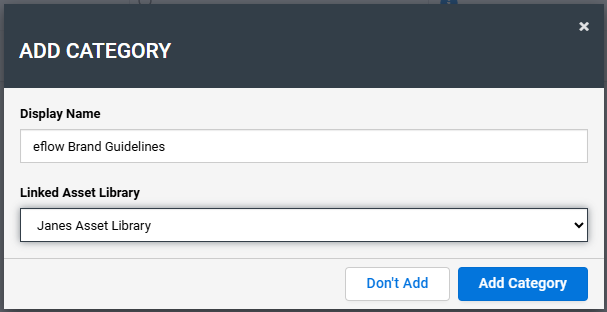 To enable this functionality in e-flow, an asset library containing the assets must be linked to a category item, this can be done whilst creating the category item or retrospectively by editing the category item and adding the 'Linked Asset Library'.