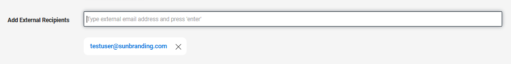 Supporting text has been added to the Add External Recipients field in the file release task to prompt users to press 'enter' to confirm adding an external email address.