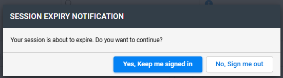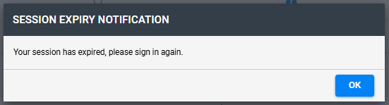 Following the 5 minute warning, the notification will update to an expiry warning. Pressing OK will return the user to the login page.