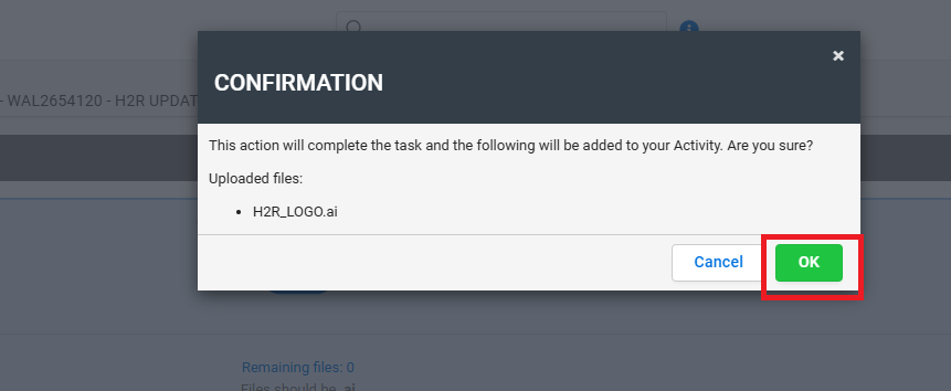 Once completed, please upload the H2R logo using the instructions provided below. This will ensure the workflow processes correctly and proceeds further so that the files are updated with the H2R logo.