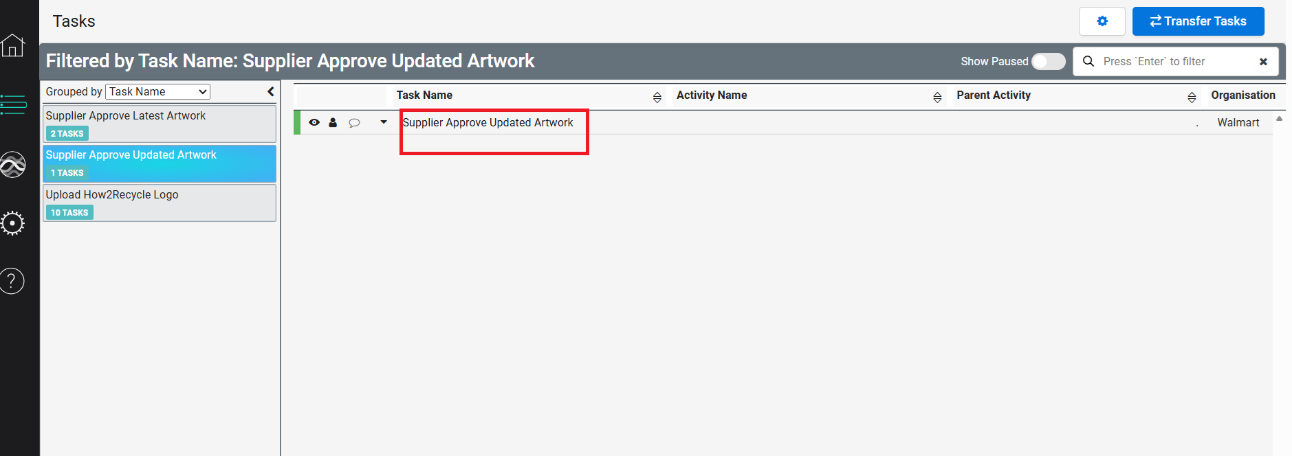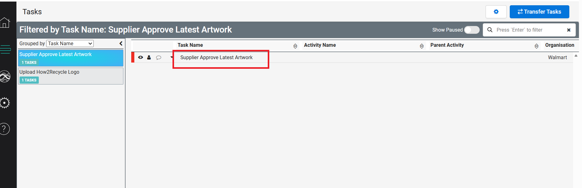 - After logging in to e-flow and navigating to the Task page, please open the task 'Supplier Approve Latest Artwork'