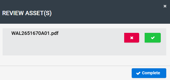 3. After clicking Complete, the below pop-up will appear. Please click the ✓ (Approve) button to approve the task. If you wish to reject the artwork, click the ✕ (Reject) button instead.