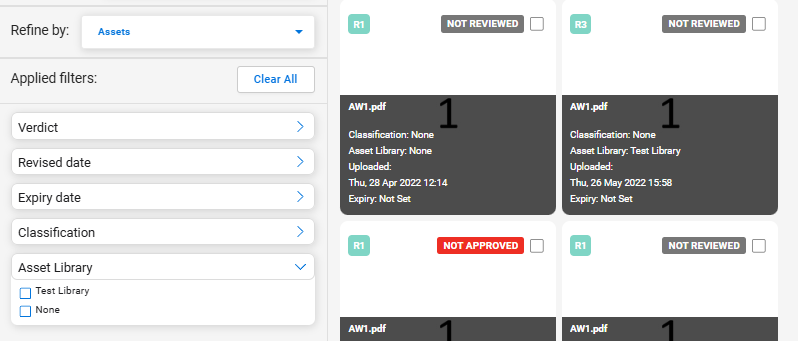 When a user selects refine by Assets in global search, there is a new option to refine by Asset Library, allowing them to narrow results to items stored within a specific library.