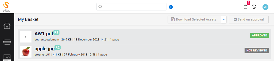 When a user has added assets to their basket from different domains/organisations, they can now 'compare' these assets using the 'Compare two assets' option, however assets from 2 separate domains cannot be sent on a batch approval together, and this option is disabled.