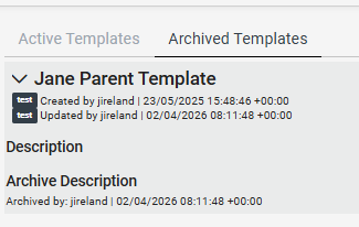 Any template that has been archived will display the user who has archived the template including the date and time of the action. It is also possible to restore the workflow template using the 'Unarchive Template' function.