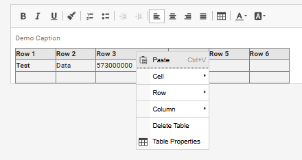 Once the table has been added by selecting 'OK', right clicking into the table allows users to modify the table if needed: