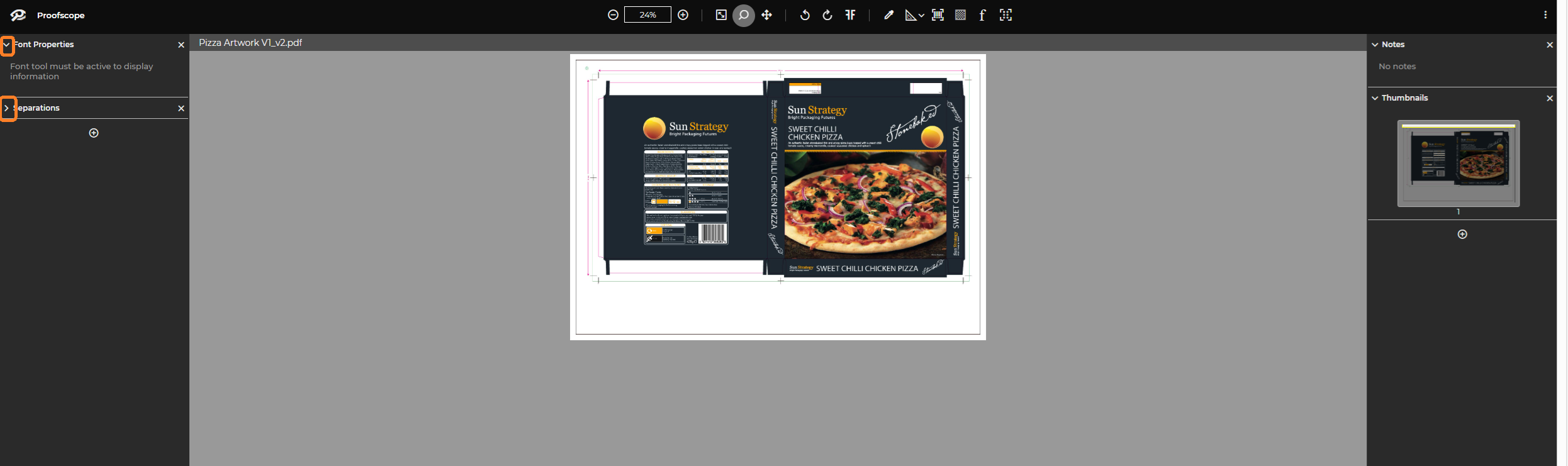 A new customisable sidebar that includes multiple palettes such as Thumbnails, Notes, and Layers. Allows you to access and discover the latest features, with panels that can be selected, docked, moved, or collapsed for easier navigation and review.